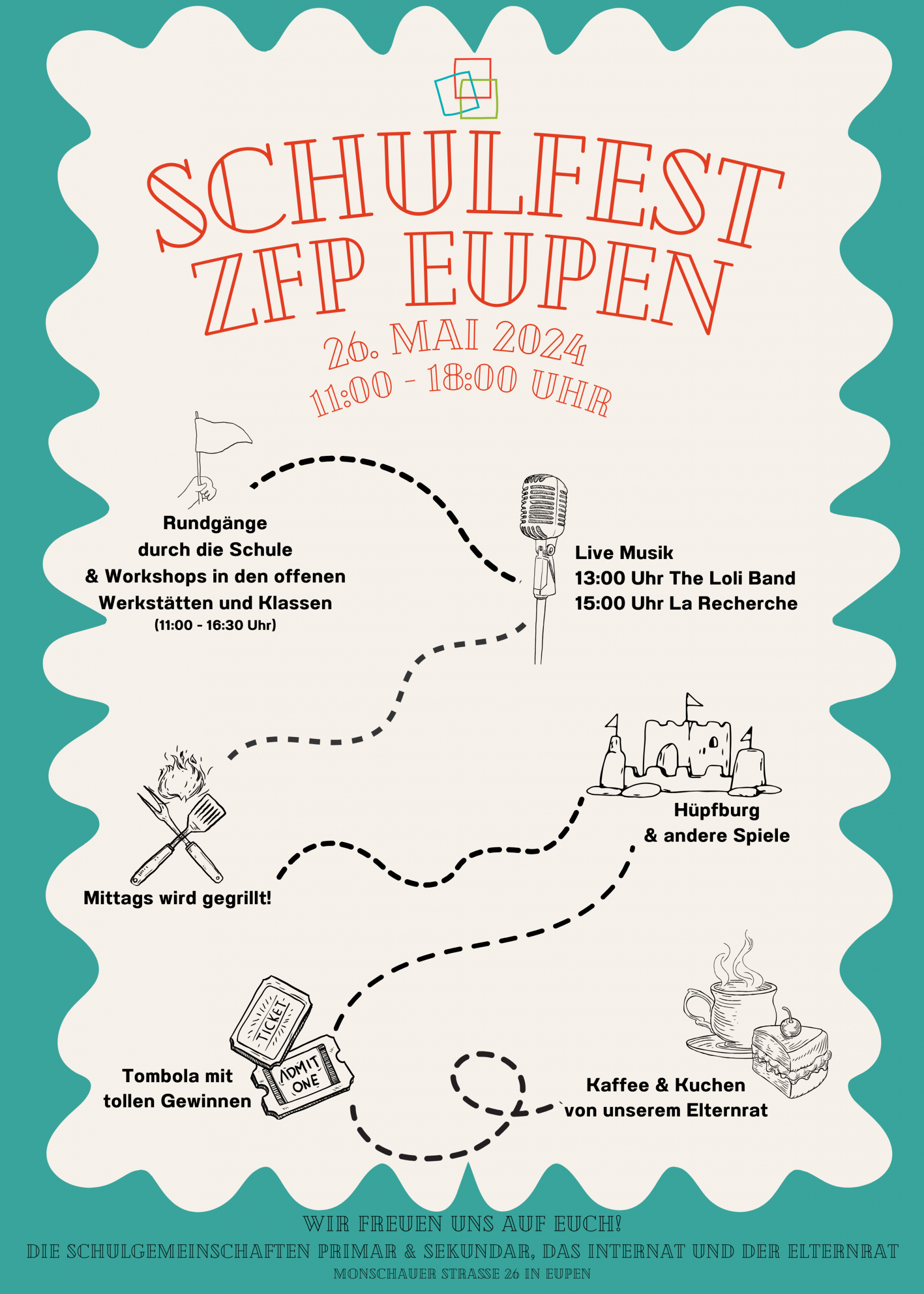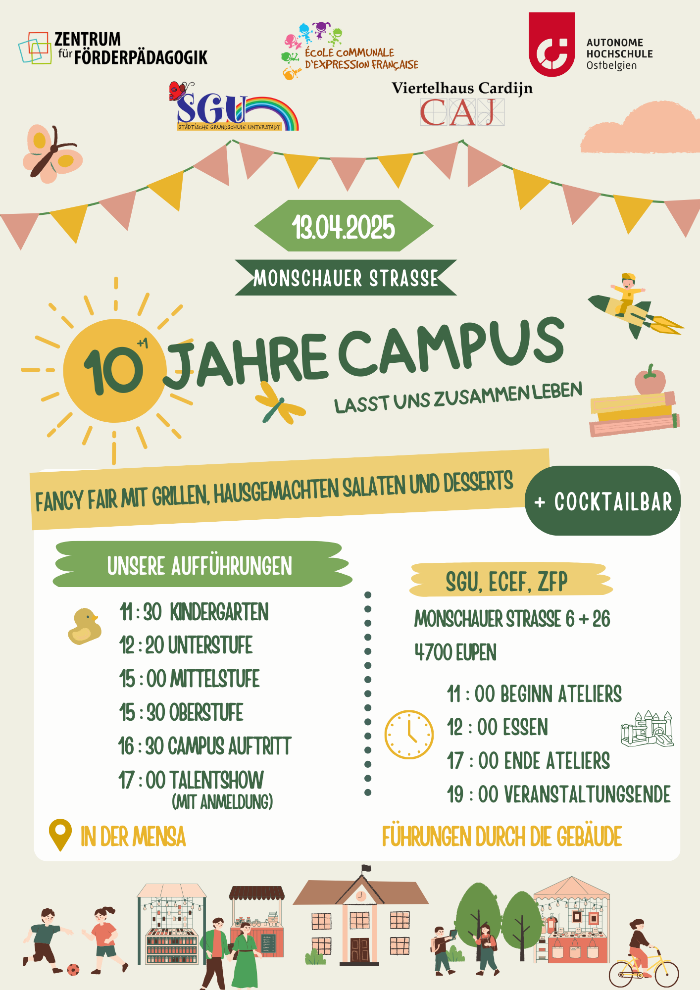 Wir laden ein zum gemeinsamen Campusfest ! Am Sonntag, den 13.04.2025 ab 11 Uhr auf der Monschauerstraße in Eupen.