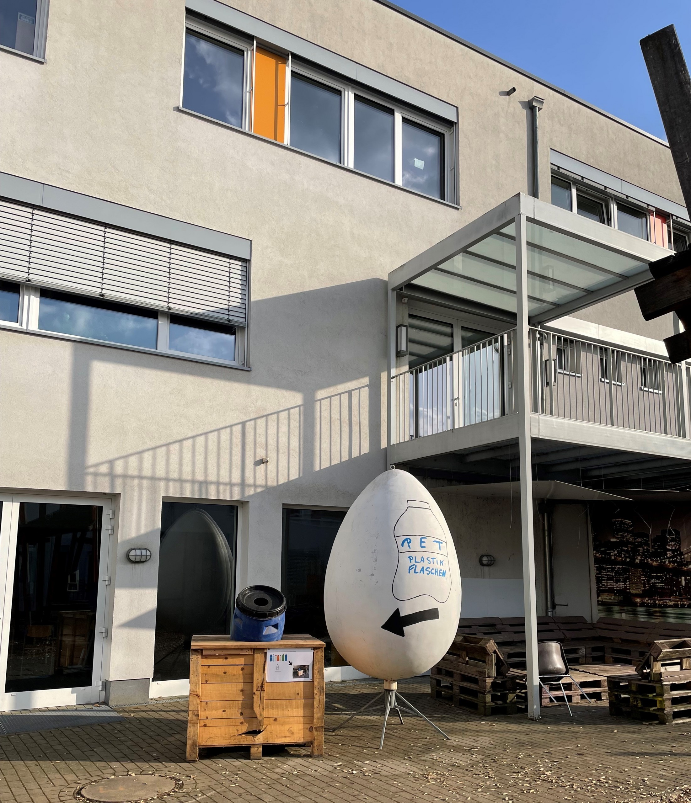 Für das Innenleben mussten Plastikflaschen gesammelt werden, so wie auf der Inspiration. Hier waren nun unsere Schülerinnen und Schüler gefragt: eine Box wurde auf den Schulhof in Eupen aufgestellt, in der die SuS aufgefordert wurde ihre Plastikflaschen i reinzuwerfen. Über Monate wuchs die Menge der Flaschen an. Somit haben die SuS eine visuelle Vorstellung davon bekommen, wie viele Plastikflaschen sich ansammeln.