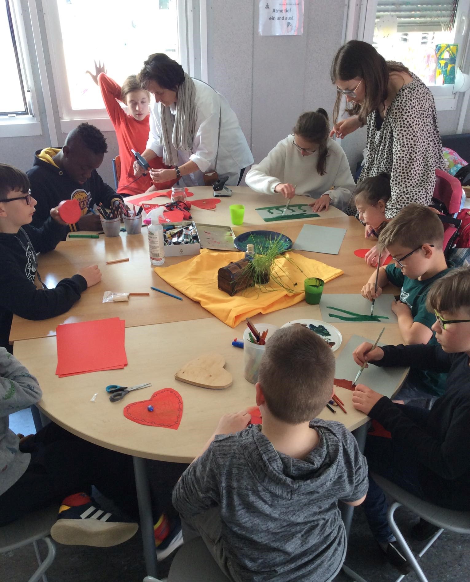 Die Ergebnisse der verschiedenen Ateliers wurden in der GGS ausgestellt. Die Ateliers, die die Kinder besucht haben, variierten von der Besichtigung eines Kräutergartens, Ernte von saisonalem Obst und Gemüse bis hin zu einem Bastelatelier von „Plastian der kleine Fisch“.